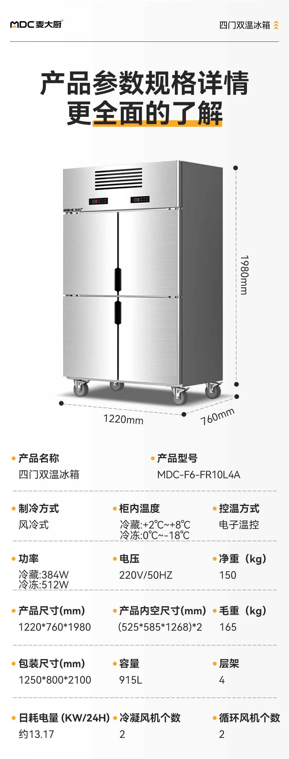 • 更多MDC商用四六门冰柜规格咨询在线客服