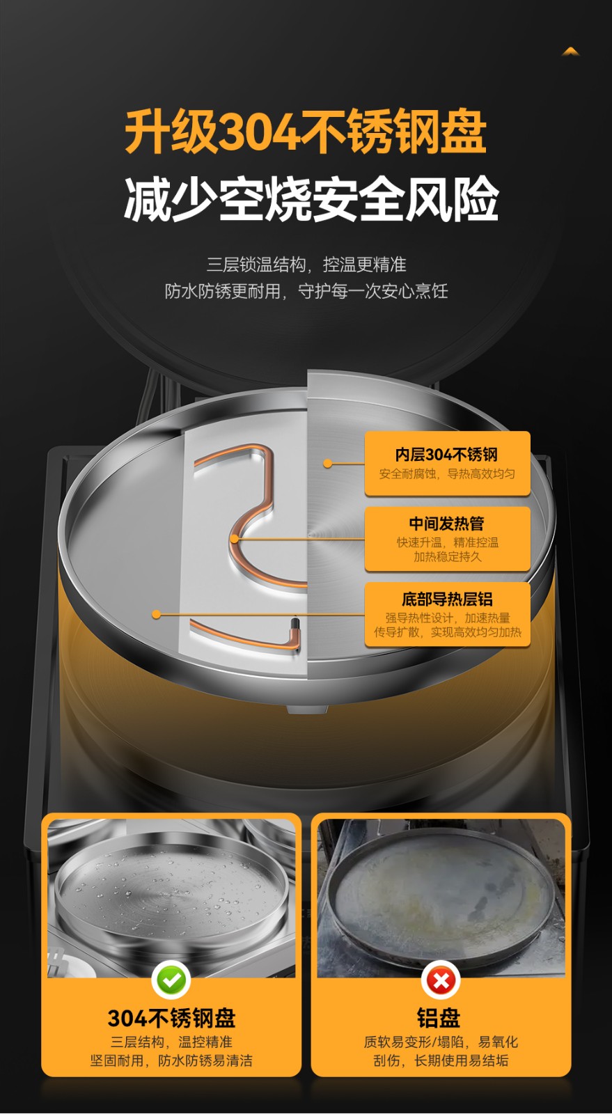 锅体材质:304不锈钢复底锅