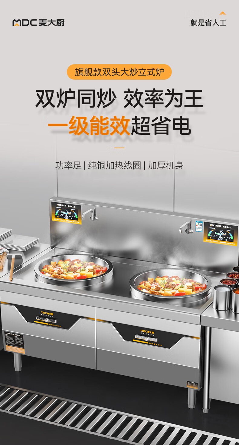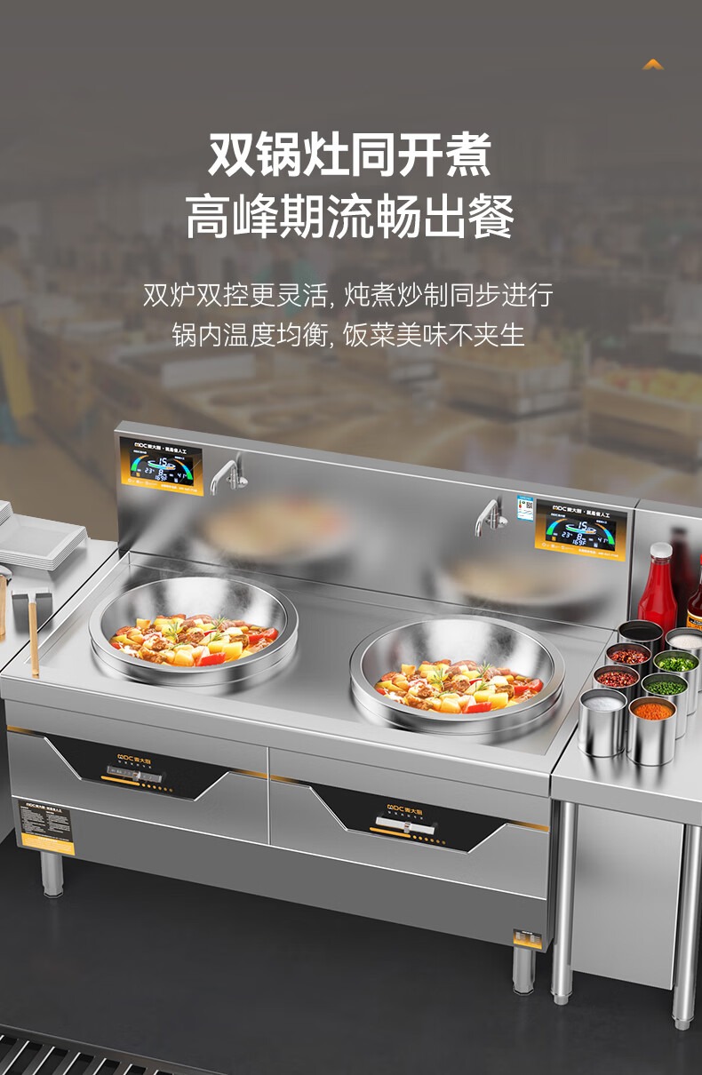 快三导师带计划赚钱学校食堂大炒锅电磁炉旗舰款30KW双头饭店餐厅商用大炒炉