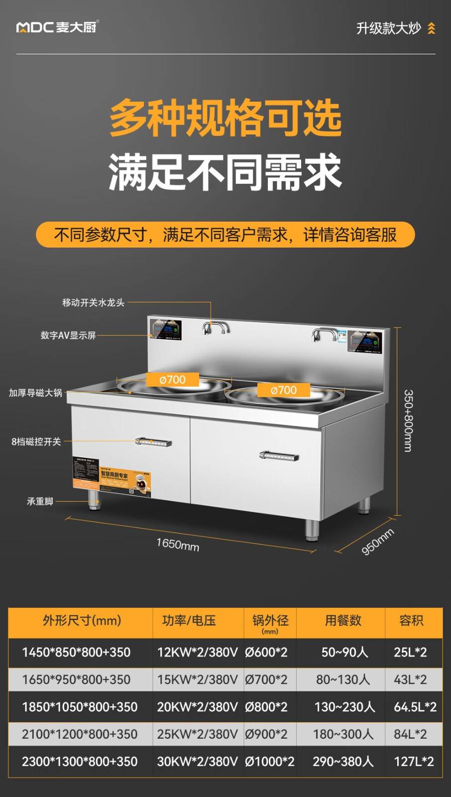 - 更多MDC商用大锅灶规格咨询在线客服