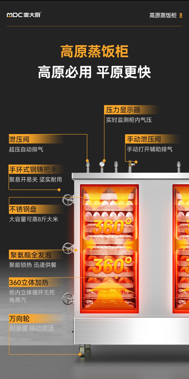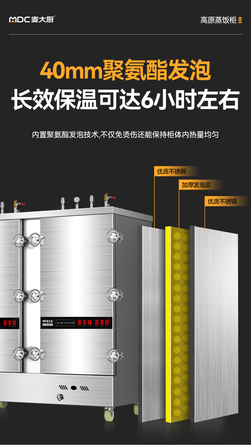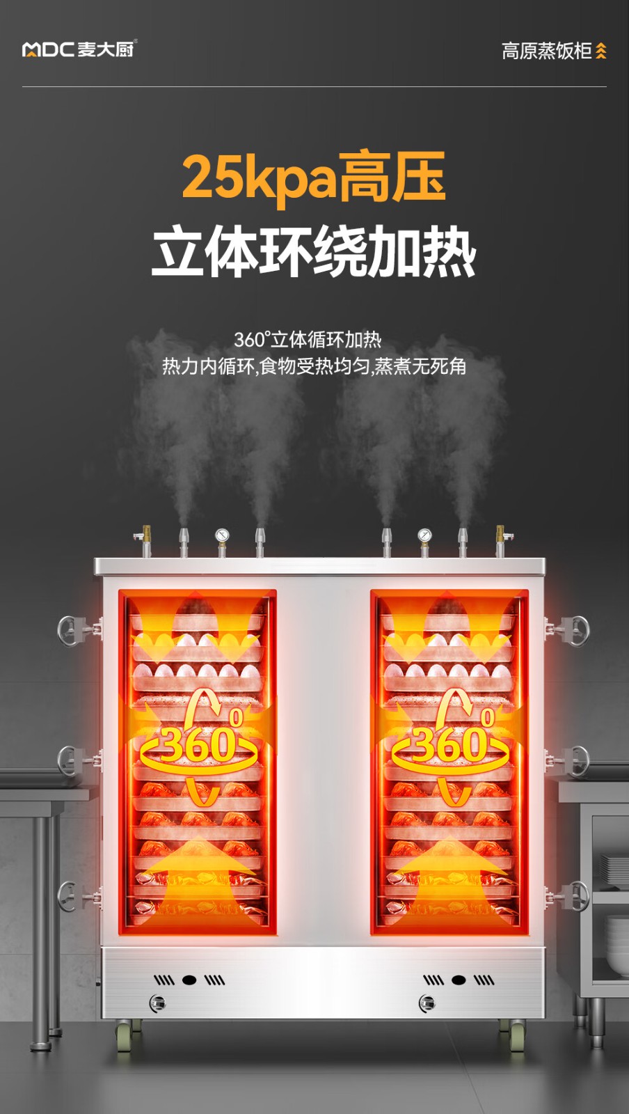 MDC商用高原蒸柜燃气款40盘双门蒸饭柜
